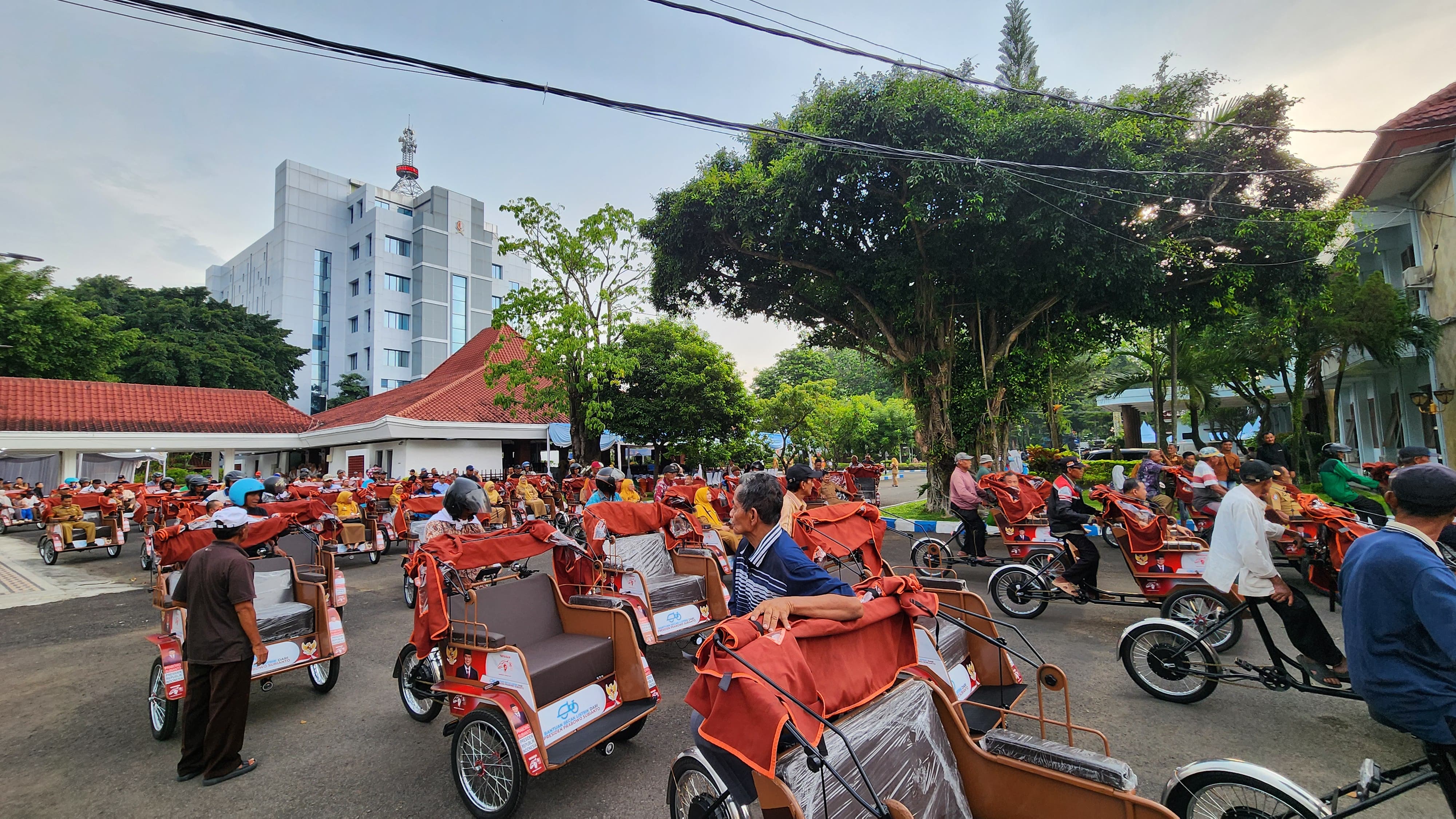 BOJONEGORO - Sebanyak 200 tukang becak lansia di Kabupaten Bojonegoro menerima bantuan becak listrik dari Presiden Prabowo Subianto melalui Yayasan Gerakan Solidaritas Nasional (GSN) pada Selasa (10/3/2026). Bantuan ini merupakan inisiasi pribadi Prabowo (non-APBN) yang bertujuan untuk meringankan beban fisik para pengemudi becak di usia senja agar tetap bisa mencari nafkah dengan lebih mudah dan efisien.